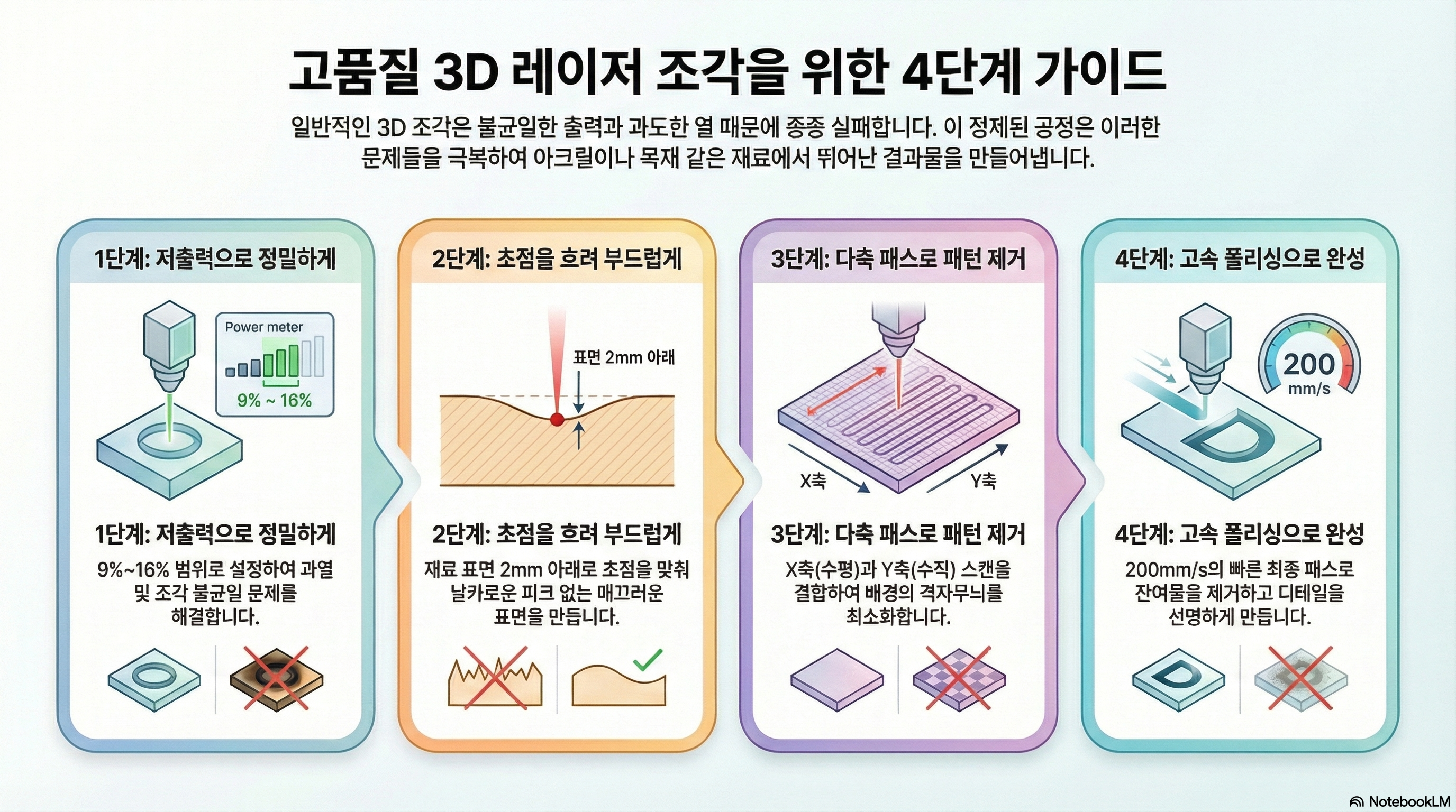 1. '약할수록 강하다': 고품질 조각은 낮은 출력에서 나온다