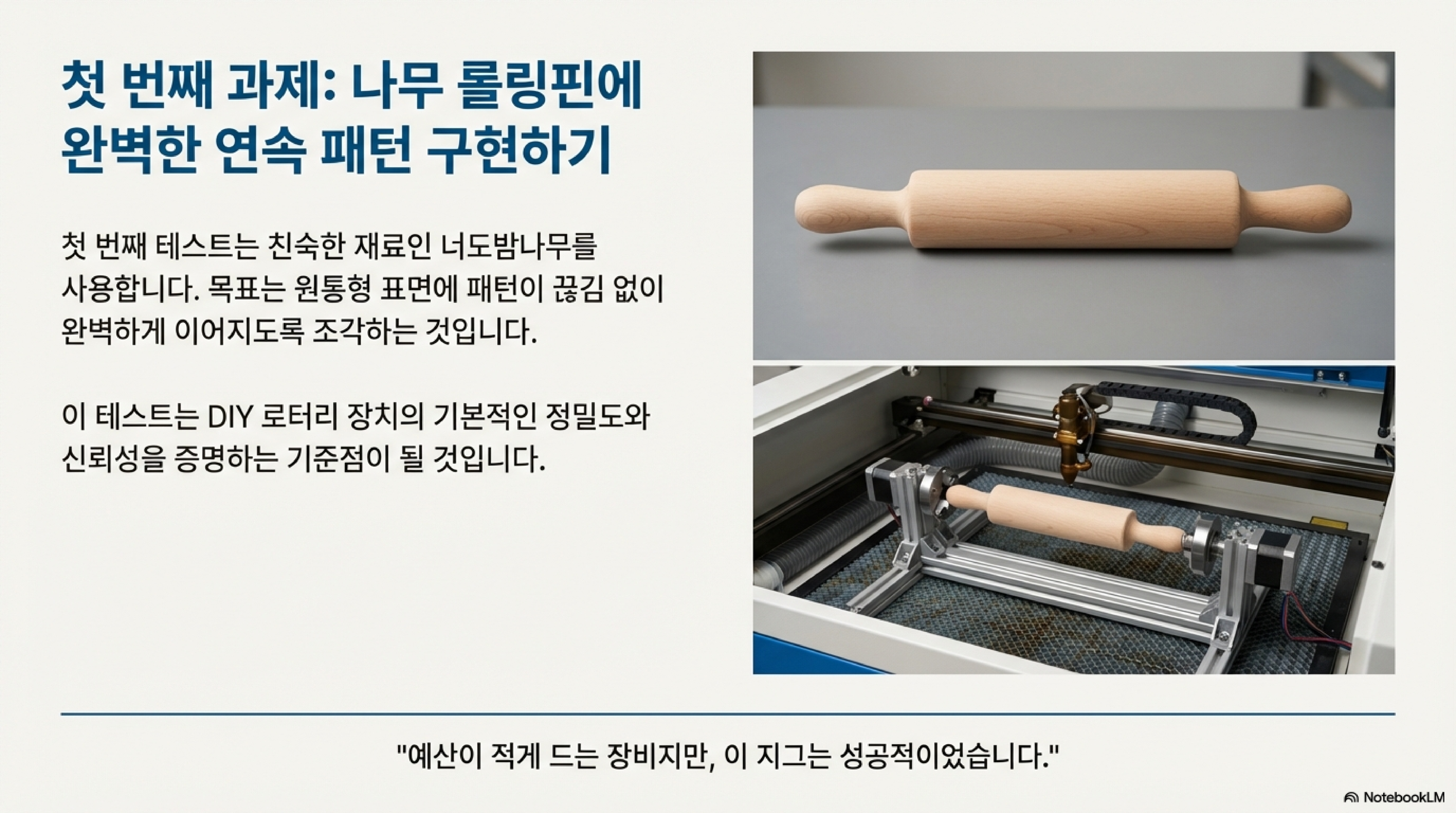 프로젝트 중 원통형 물체를 각인하기 위해 간단하고 저렴한 DIY 회전 고정 장치를 제작했습니다. 하지만 긴 작업을 수행할 때, 기계의 움직이는 갠트리(gantry)가 이 고정 장치와 충돌하는 기계적인 문제가 발생했습니다.