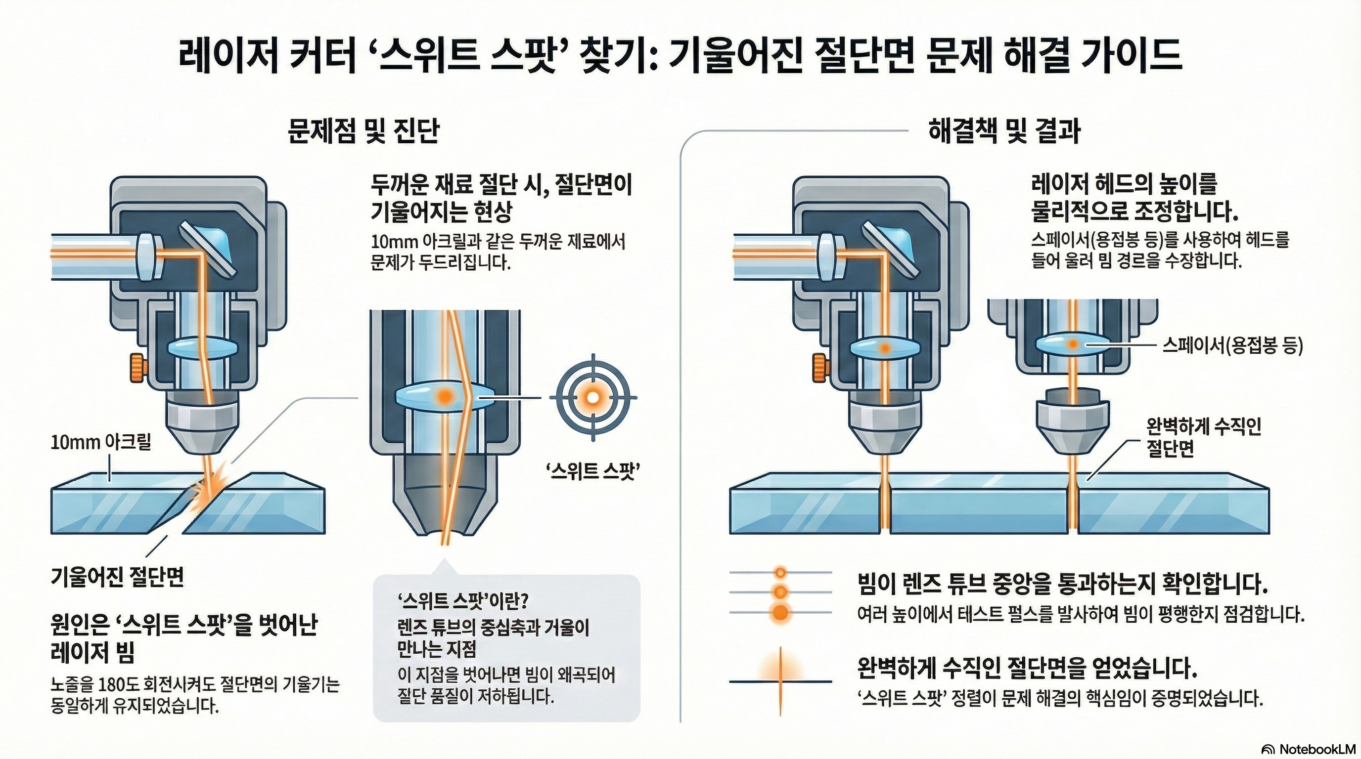 레이저 커터, 왜 재료가 비스듬하게 잘릴까? 아무도 알려주지 않는 '스위트 스팟'의 비밀
