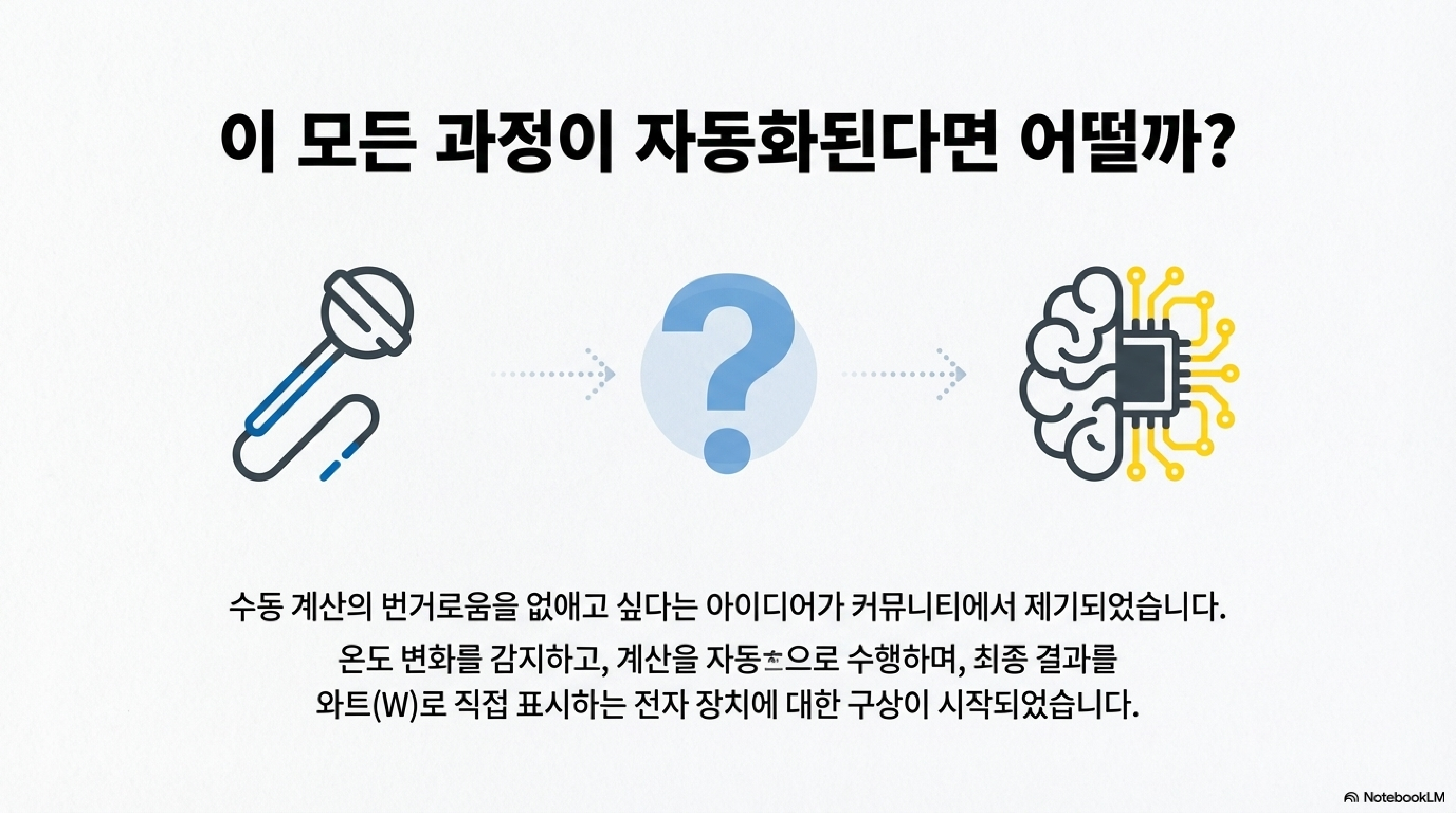 이는 단순히 계산을 줄인 것을 넘어, 물리적인 설계(알루미늄 헤드의 질량과 열용량)와 표준화된 시간(테스트 시간)을 절묘하게 결합하여 복잡한 열량 계산 공식을 초등 산수로 바꿔버린 엔지니어링의 승리입니다.