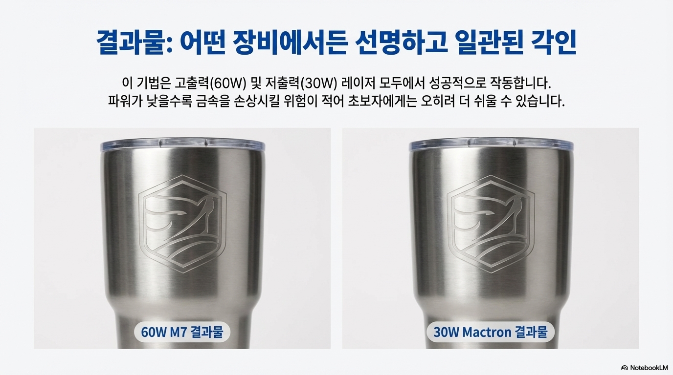 파이버 레이저로 파우더 코팅된 텀블러에 각인 작업을 해보신 분이라면 누구나 공감할 만한 어려움이 있습니다. 바로 번거로운 회전 장비(로터리 툴)가 필요하고, 자칫 잘못하면 코팅 아래의 금속 표면까지 손상시킬 수 있다는 점이죠. 하지만 만약 이 모든 문제를 해결하고, 더 간단하면서도 전문가 수준의 결과를 얻을 수 있는 방법이 있다면 어떨까요? 이 글에서 그 놀라운 비결을 공개합니다.