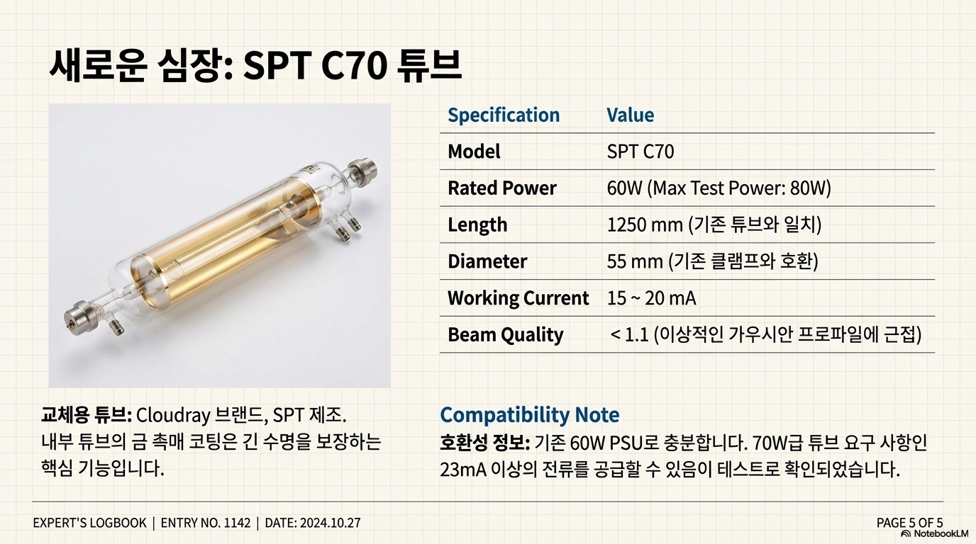 겉보기에는 완벽했던 레이저 튜브를 교체하는 과정은 제게 중요한 교훈을 주었습니다. 그것은 힘 좋은 절단 능력 뒤에 숨어 있던 '무뎌진 연필'을 발견하고, 정밀한 빔 품질과 완벽한 Z축 정렬을 통해 그 연필심을 다시 날카롭게 만드는 여정이었습니다. 레이저의 성능은 단순히 출력 수치나 기본적인 작동 여부로 판단할 수 없으며, 빔의 품질, 정밀한 Z축 정렬, 그리고 때로는 상식을 깨는 유지보수 방법까지 고려해야 하는 미묘하고 복합적인 문제라는 것을 깨달았습니다.