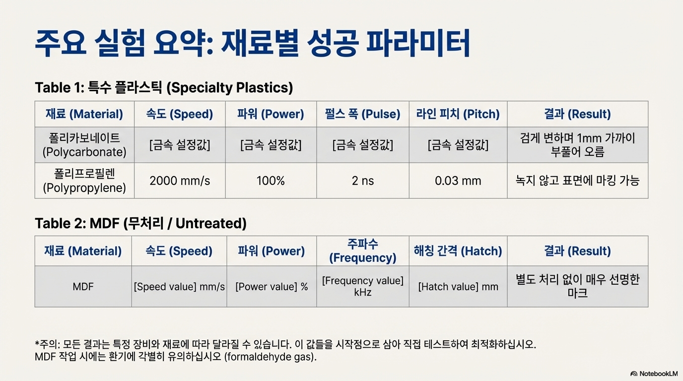 그 마법의 재료는 바로 베이킹 소다(탄산수소나트륨) 와 식용 소금(염화나트륨) 이었습니다. 이 간단한 금속염들이 나무 표면에 레이저 주파수와 공명할 수 있는 분자 구조를 제공하여, 불가능했던 각인을 현실로 만든 것입니다. 단, 한 가지 주의할 점이 있습니다. 염화나트륨(소금)을 태울 때 염소 성분 때문에 유해한 가스가 발생할 수 있으므로, 반드시 적절한 환기 장치를 사용해야 합니다.