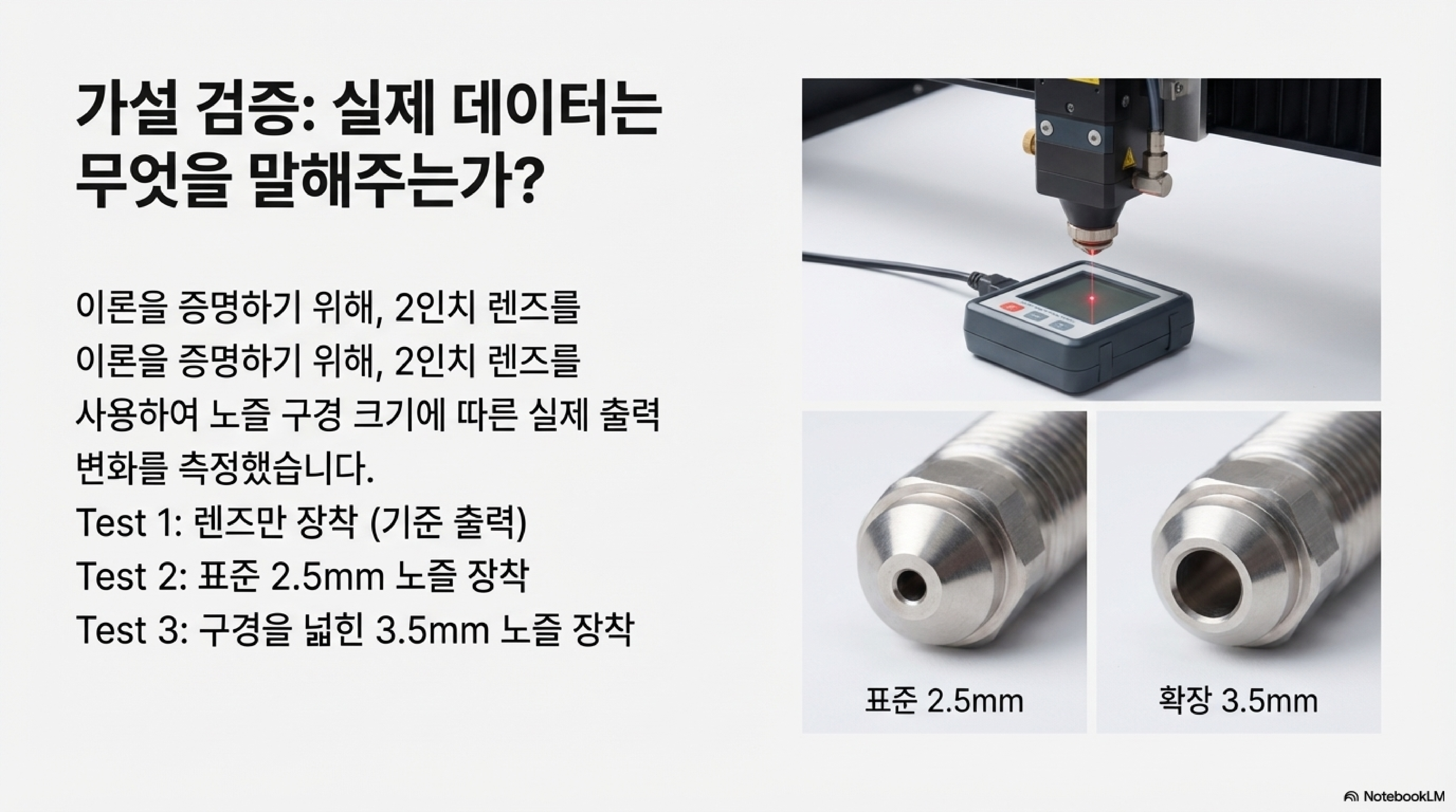 "노즐 구멍이 크면 더 많은 레이저 출력이 통과해서 절단이 더 잘 되지 않을까?" 이는 매우 직관적인 생각이지만, 실험 결과는 정반대의 사실을 보여줍니다.