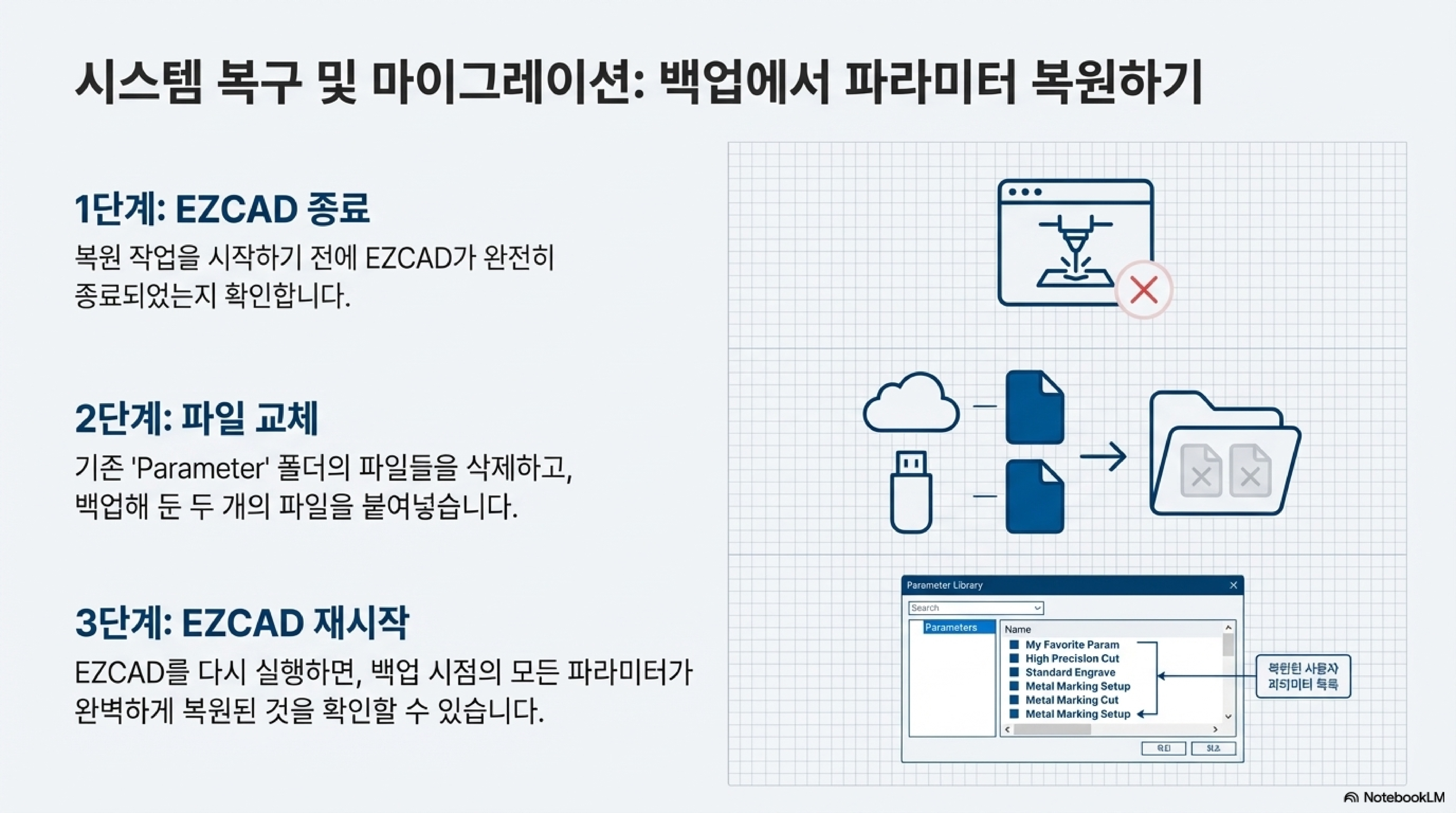 컴퓨터가 고장나도 10초 만에 복구: 파라미터 라이브러리를 직접 백업하세요.