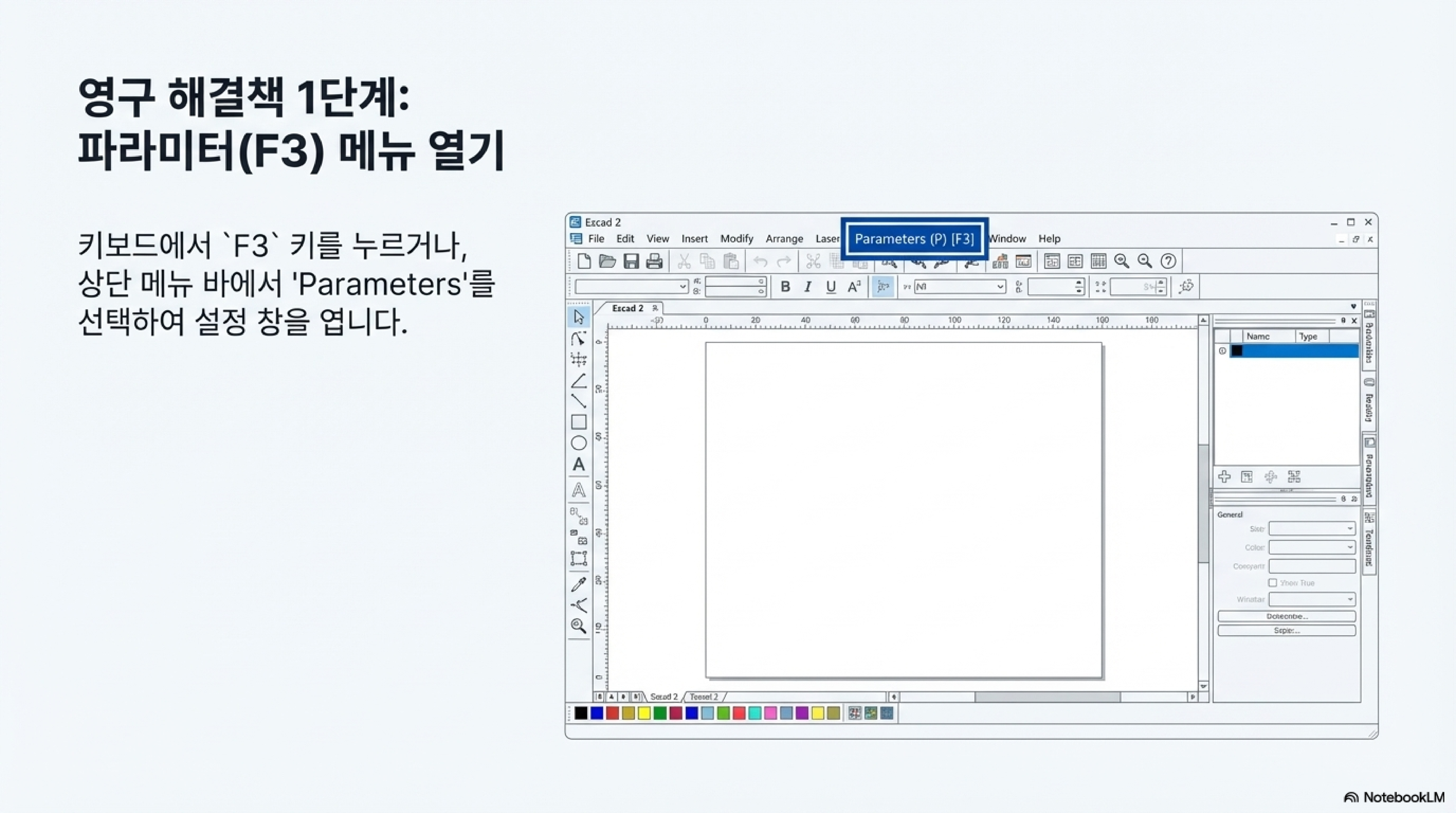 - 키보드에서 F3 키를 눌러 파라미터(Parameters) 설정 창을 엽니다.