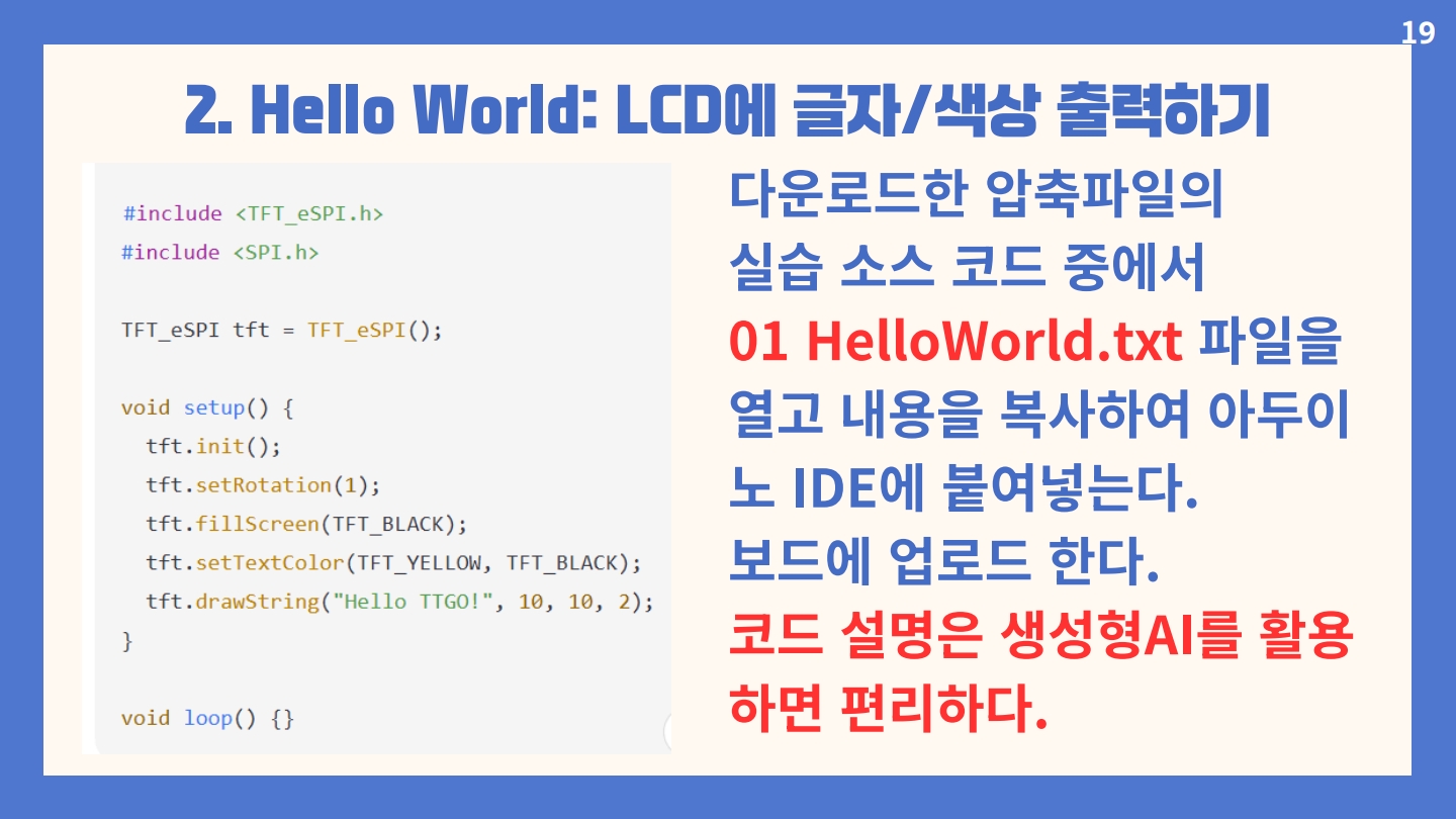 TTGO T-diplay 바이브코딩을 해볼 수 있는 간단한 메이커 프로젝트