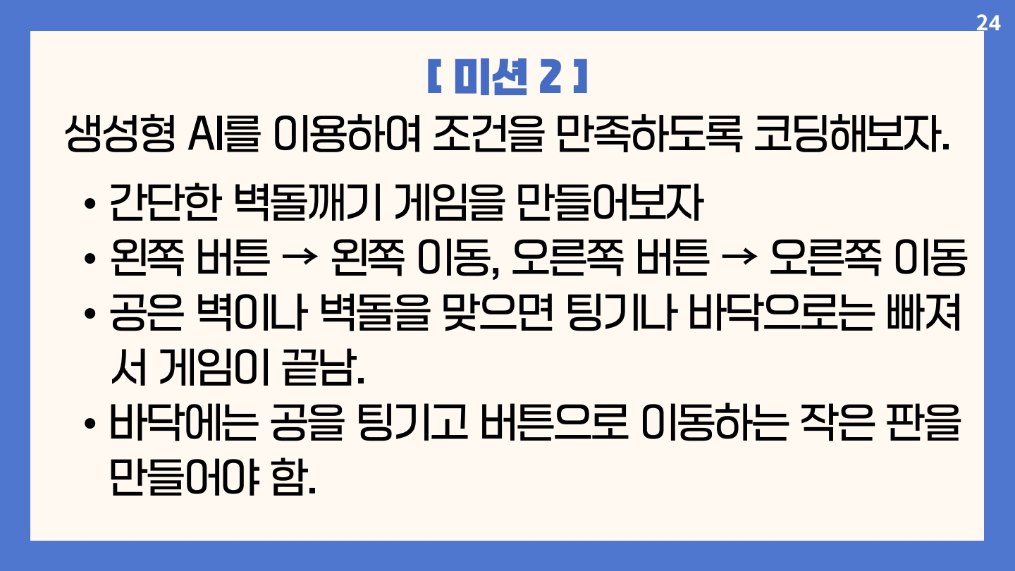 선생님들, 바이브코딩을 해볼 수 있는 간단한 메이커 프로젝트입니다. 학교에서 동아리 하실때 적용해보시면 좋을 것 같습니다. 시간은 ppt에서 적당히 생략하시면 2차시로 끝내실 수 있습니다. 재료비는 3D프린팅 제외하고 보드만 알리익스프레스에서 구매하시면 인당 1만원 안쪽입니다.