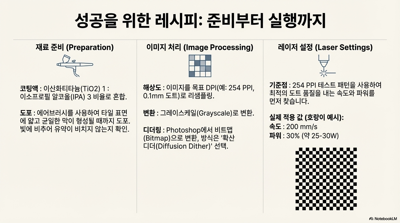놀랍게도, 이는 순수한 물리적 변화입니다. 레이저의 강렬한 열이 이산화 티타늄의 물리적인 '결정 구조'를 바꾸는 것입니다. 원자 배열이 달라지면서 빛을 반사하는 방식이 바뀌고, 우리 눈에는 그 변화가 검은색으로 인식될 뿐입니다. 이 근본적인 과학 원리를 이해하는 것이 전체 공정을 마스터하는 첫걸음입니다.