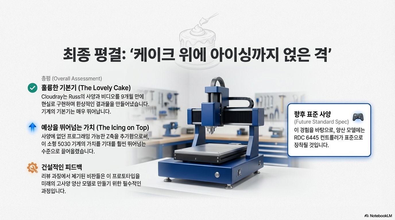리뷰어가 "블루드림(Bluedream)"이라 이름 붙인 이 프로토타입 기계는 몇 가지 단점과 필수적인 컨트롤러 업그레이드에도 불구하고, 전문가의 원래 사양을 훨씬 뛰어넘는 "환상적인 장비"임이 분명합니다. 중요한 것은, 제조사인 클라우드레이(Cloudray)가 이러한 "가차없는" 피드백을 기꺼이 수용했다는 점입니다. 이는 최종 양산 모델에 대한 기대를 한껏 높이는 긍정적인 신호입니다.